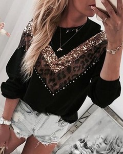 Sweat Pull Femme Sexy Sequin Leopard Dore Sexy Tendance Taille S Neuf Ebay