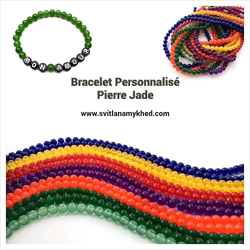 Bracelet Personnalise En Pierres Naturelles Jade Couleurs Aux Choix Avec Message Prenom Nom Mon Amour Reversible Sur Le Fil Elastique Creation Sur Mesure Amazon Fr Handmade