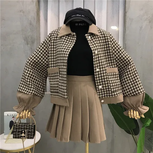 Petite Veste Courte En Tweed A Carreaux A Une Rangee De Boutons Pour Femmes Parfumees Taille Haute Plissee Deux Pieces Dame Retro Jupe Costumes Aliexpress
