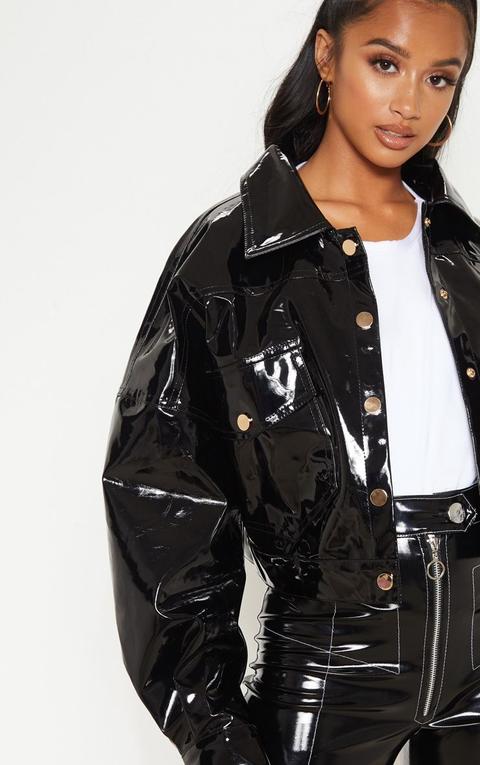 Petite Veste Courte Style Camionneur Oversize Noire En Vinyle Noir From Prettylittlething On 21 Buttons