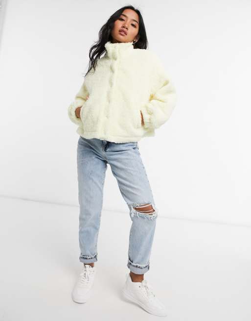 Asos Design Petite Veste Courte En Polaire Jaune Pale Asos