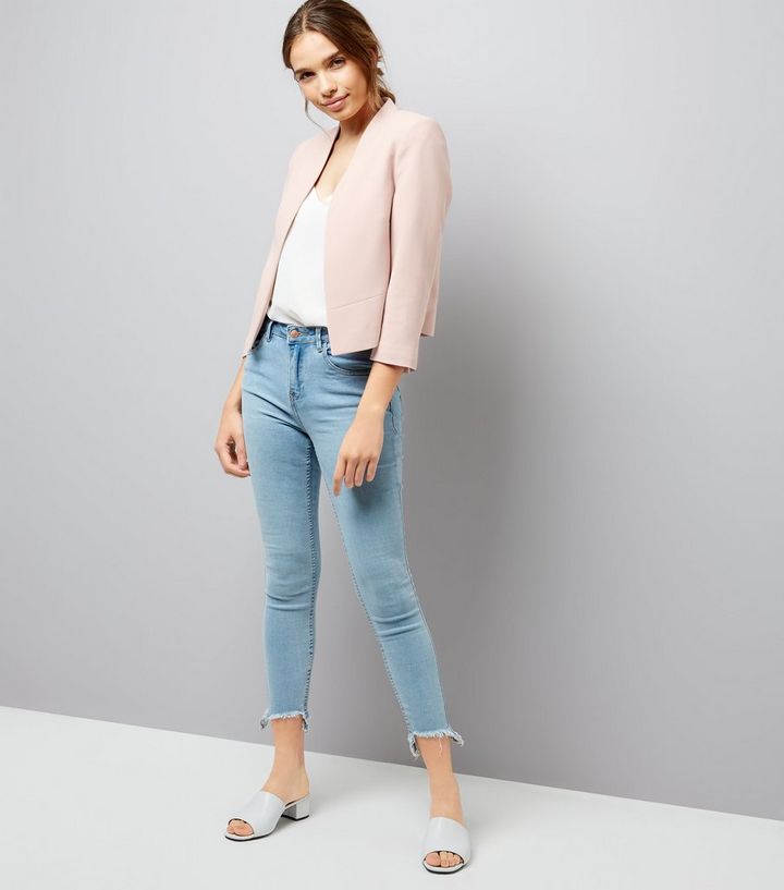 Petite Veste Courte En Jean Delave A Bordure Dechiree Delavage Bleu Clair From Prettylittlething On 21 Buttons