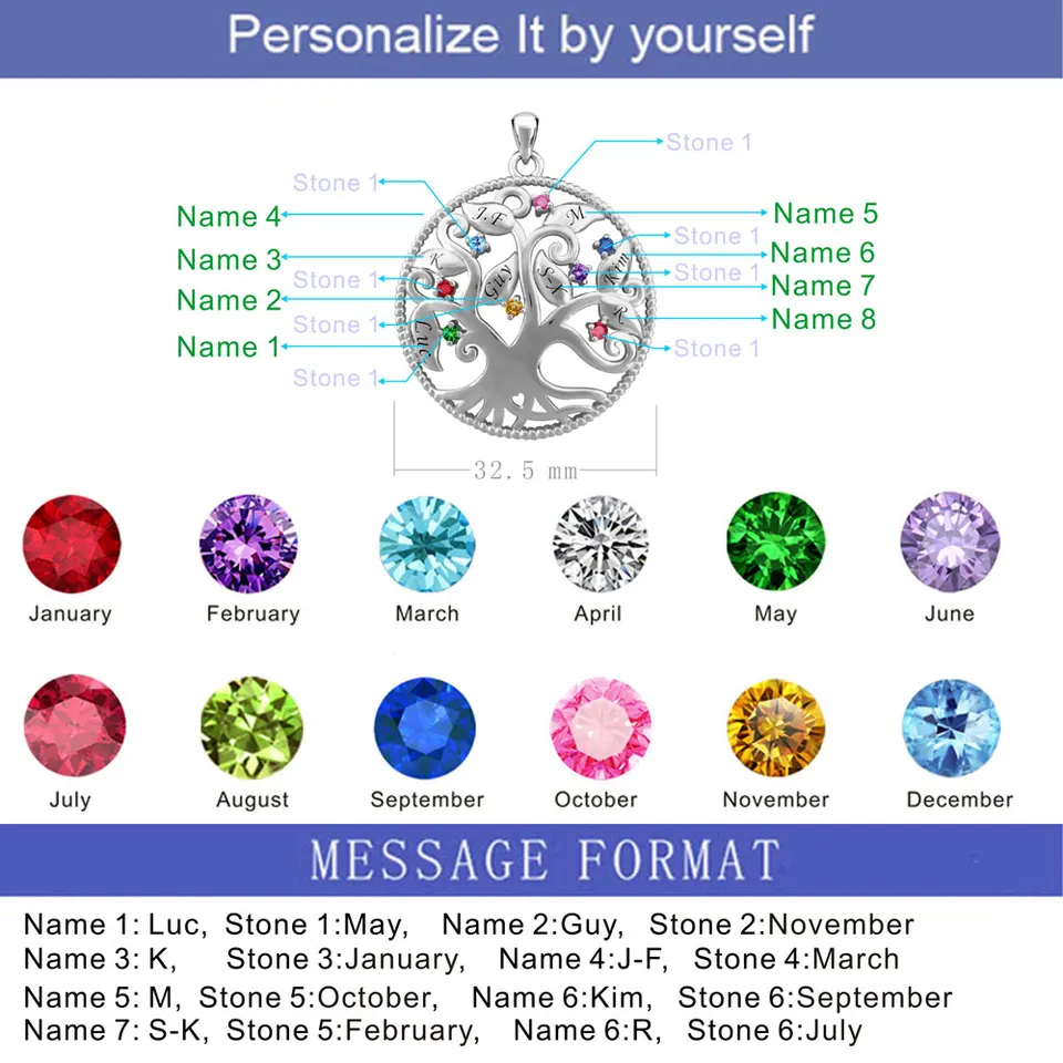 Aijaja 925 Collier Et Pendentifs Arbre Genealogique En Argent Sterling Pierres De Naissance Personnalisees Gravure Pendentifs Arbre De Vie Pour Cadeau Maman Aliexpress