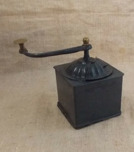 Moulin A Cafe De Communaute Tole De Fer Et Tremie En Cuivre Anciennement Etamee Assemblage A Vente Aux Encheres Art Populaire