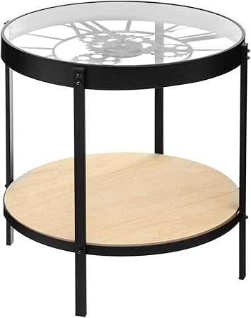 Pegane Table A Cafe Pendule Mecanique En Fer Et Verre Trempe L 50 5 X L 50 5 X H 49 Cm Amazon Fr Cuisine Maison