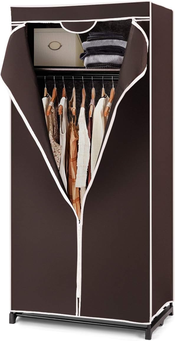 Montage Simple Noir Cafe Gris 75x50x170cm Cafe Goplus Armoire De Rangement Pendrie En Tissu Et En Fer Robuste Et Impermeable Armoires De Rangement Cuisine Maison