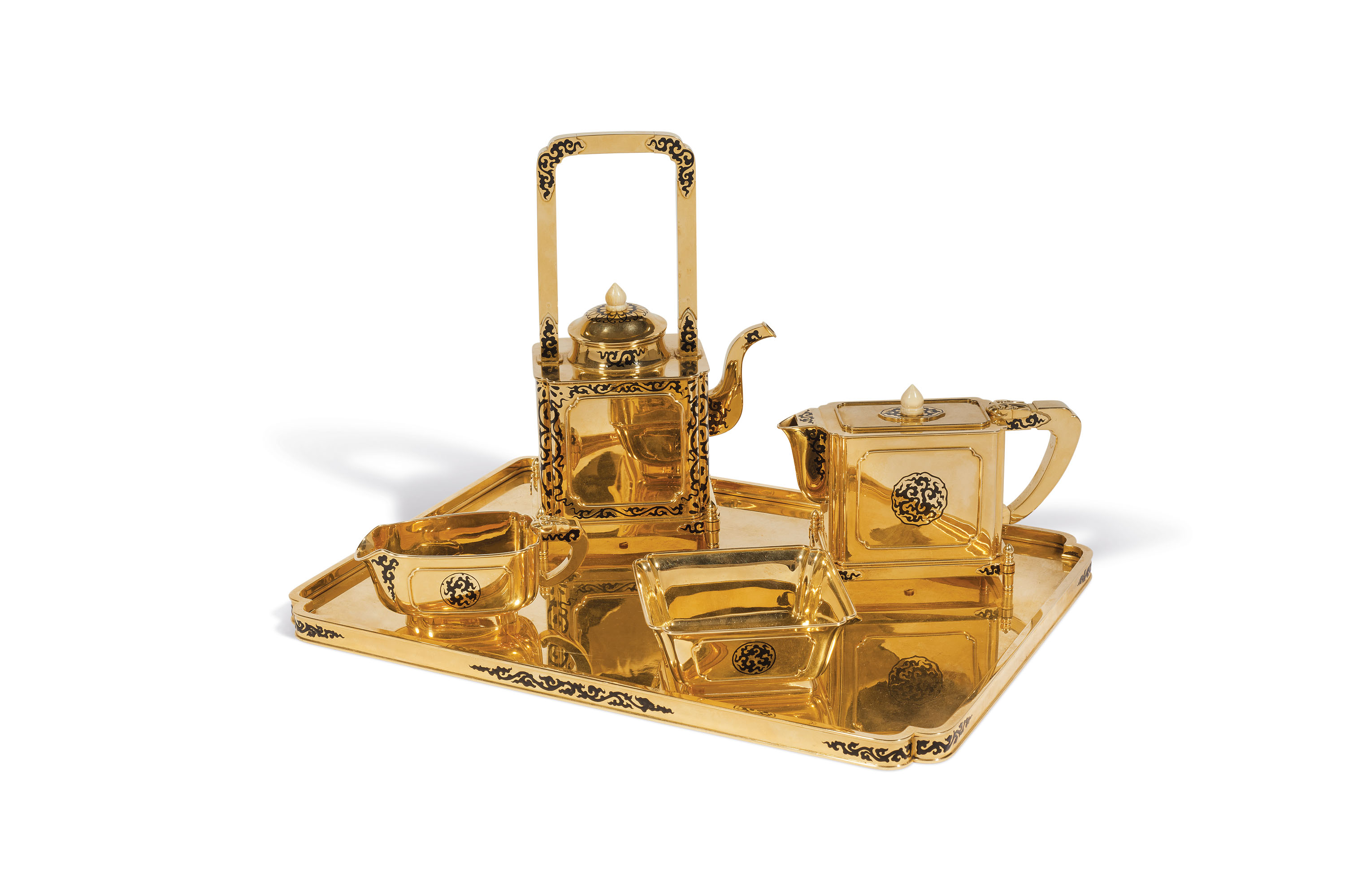 Service A The Et Cafe En Or 18k Laque Noire Et Ivoire
