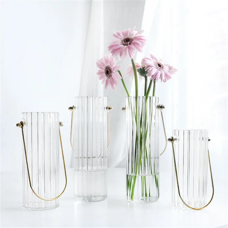 Vase A Fleurs En Verre Transparent A Rayures Metalliques Simples De Style Nordique Petit Portable Arrangement De Fleurs Fraiches Aliexpress
