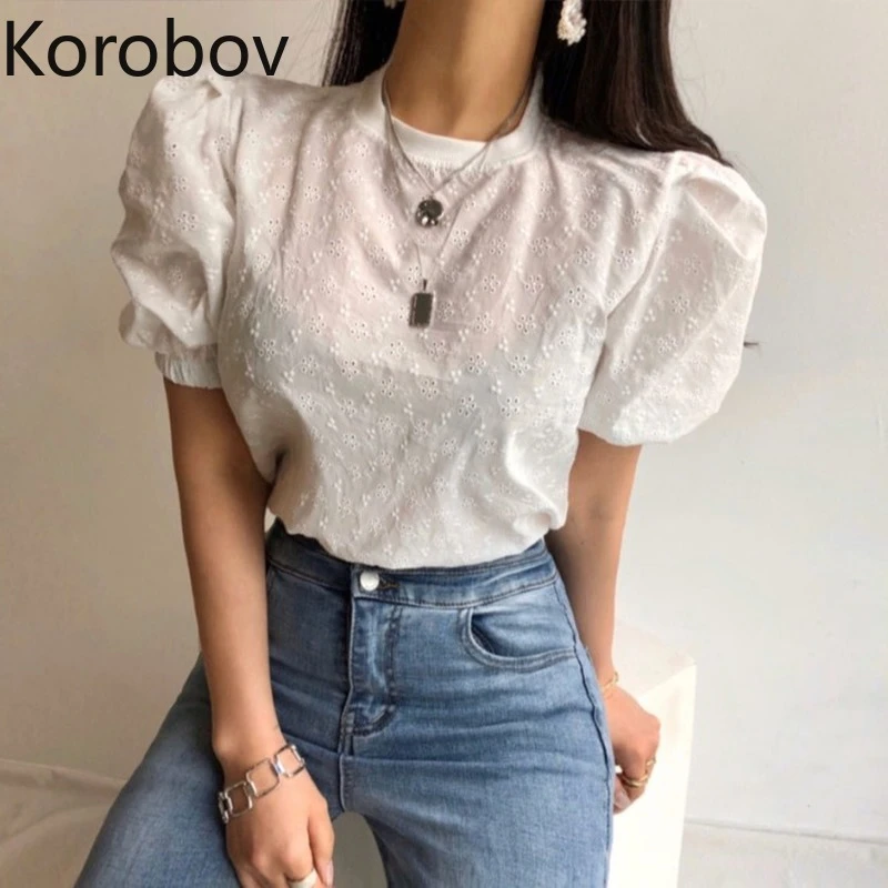 Korobov Summer New Chic Cotton Women T Shirts Korean O Neck Puff Sleeve Tee Femininas Elegant Solid T Shirt Femme T Shirts Aliexpress