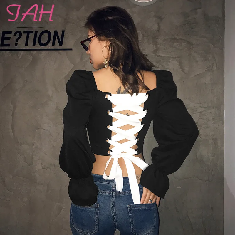 Iamhotty Chic Palace Style Elegant Vintage Women Tshirt Square Neck Flare Sleeve Ruched Tee Shirt Femme Ruffles Bandage T Shirts T Shirts Aliexpress