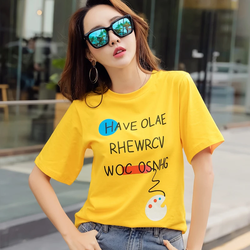 Cotton T Shirt Summer Short Sleeve Top Tee Shirt Femme Camiseta Mujer Printing Letter Women Tshirt Korea Style Chic Top T Shirts Aliexpress