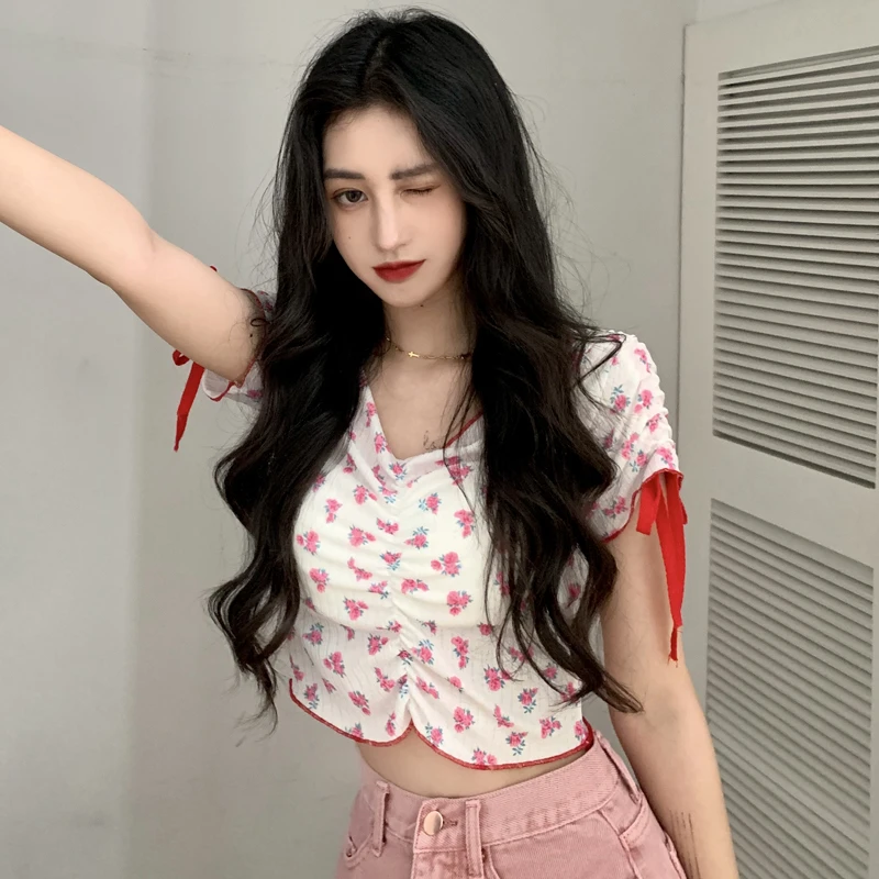 2 Colors Summer Korean Chic Style Short Sleeve V Neck Floral T Shirts Womens Tee Shirt Femme Women Short Crop Tops C2573 T Shirts Aliexpress