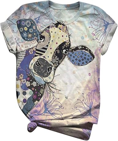 Tizupi T Shirt Femme Humor Plus Size Top Femme Ete Chic Short Sleeve Blouse Women Round Neck Animal 3d Printed Tops Purple S Amazon Co Uk Clothing