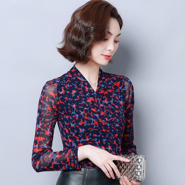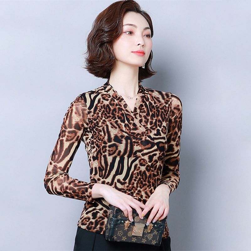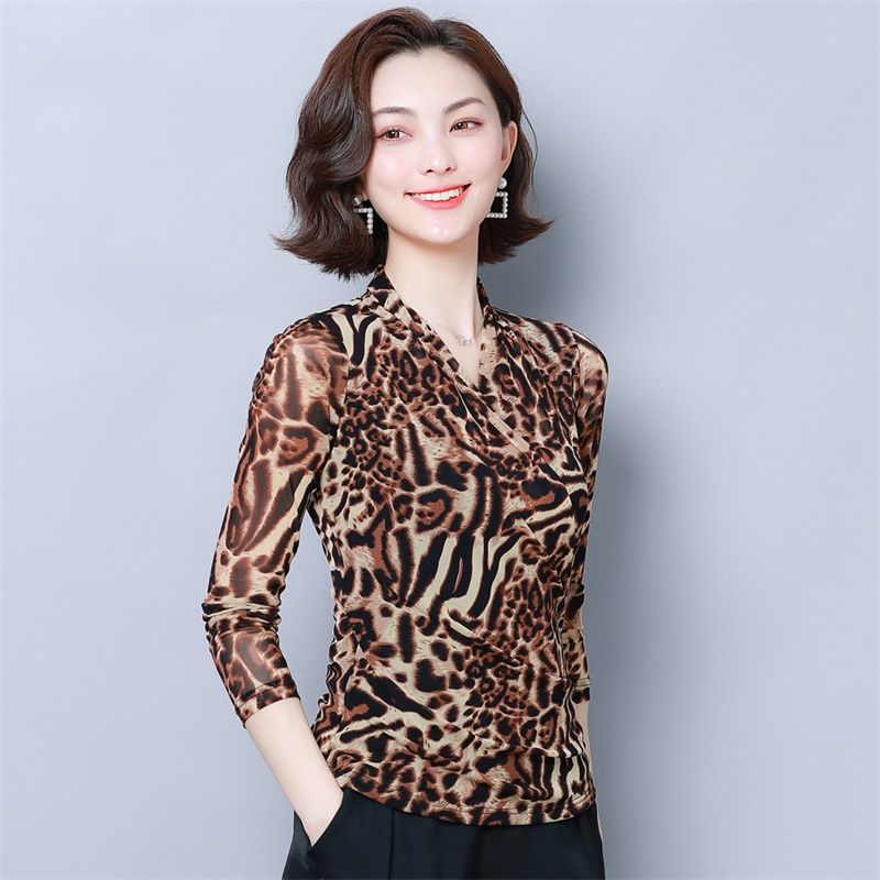 V Neck T Shirt Femme Leopard Print Mesh Chic Fashion Elegant Office Ladies Tops Plus Size Slim Fit 4xl 3xl Transparent Sleeve Best Site For T Shirts T Shirt From Suroise 19 85