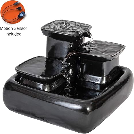 Miaustore Fontaine A Eau En Ceramique Pour Chats 8 Bassins D Eau Potable 3 4 Litres Avec Pompe A Eau Silencieuse Pas De Filtres Active Par Le Mouvement Noir Amazon Fr Animalerie