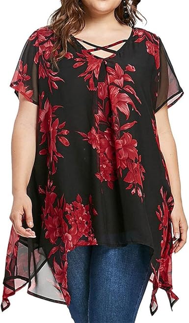 Bringbring Womens Tops Chemisier A Fleurs Femme Rouge Large Amazon Fr Vetements Et Accessoires