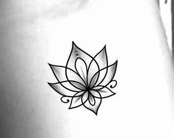 Small Ornamental Lotus Flower Temporary Tattoo Set Of 3 Etsy