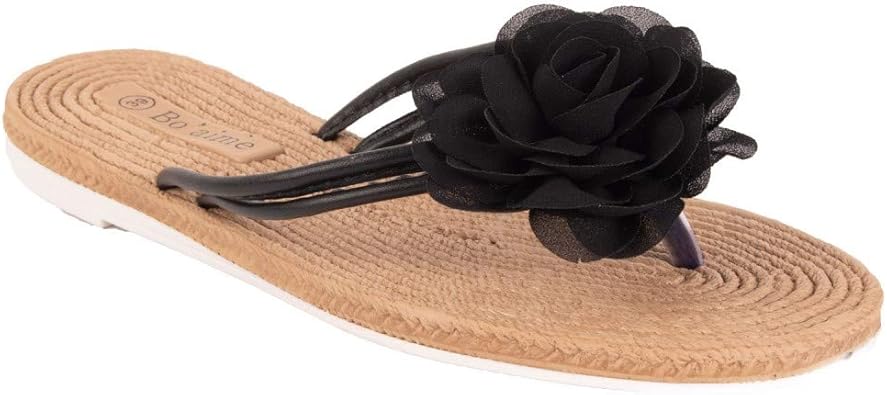 Tong Femme Fleur Tissu Mousseline Et Semelle Effet Fausse Corde En Simili Cuir Amazon Fr Chaussures Et Sacs