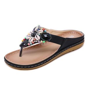 Tongs Femme Strass Boheme Sandales En Cuir Confortable Ete Flip Flops Anti Derapant Chaussons De Plage En Taille 34 41 Amazon Fr Chaussures Et Sacs