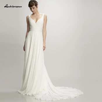 Lakshmigown Simple Chiffon Long Wedding Dress Beach Robe Mariee Chic Bridal Gown V Neck Boho Wedding Dresses Open Back Buy At The Price Of 94 49 In Aliexpress Com Imall Com