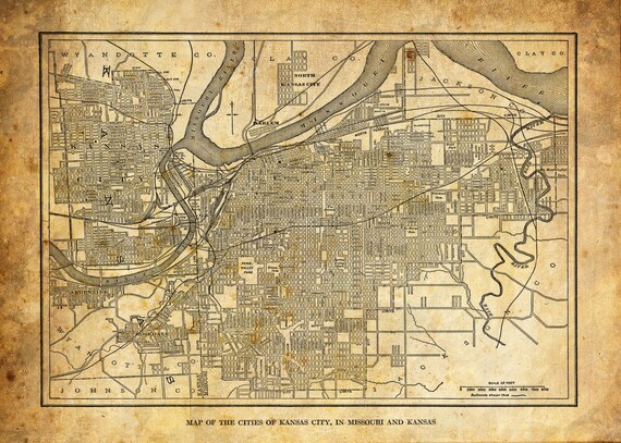 Kansas City Carte Carte De Rue Vintage Sepia Grunge Etsy