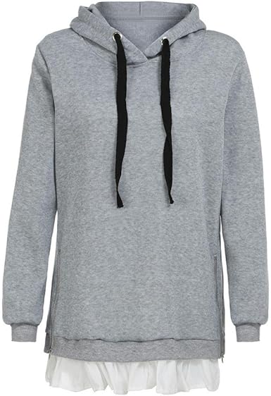 Longra Grande Taille Pull Femme Fille Manche Longue Zipper Sweat Shirts Sweats A Capuche Hauts A Capuche Uni Loose Tops Pull Mi Longue Tops Demi Saison Pull Tunique Pull Original Femme Gris Xl