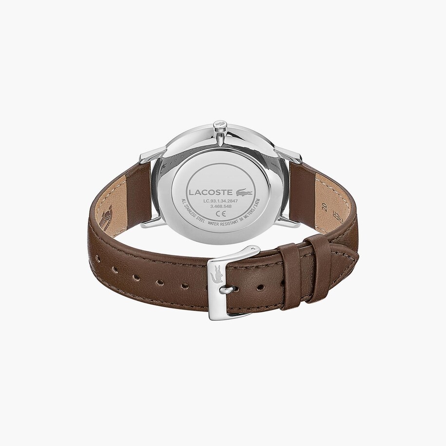 Montre Homme Moon Avec Bracelet En Cuir Marron Et Cadran En Acier Inoxydable Lacoste