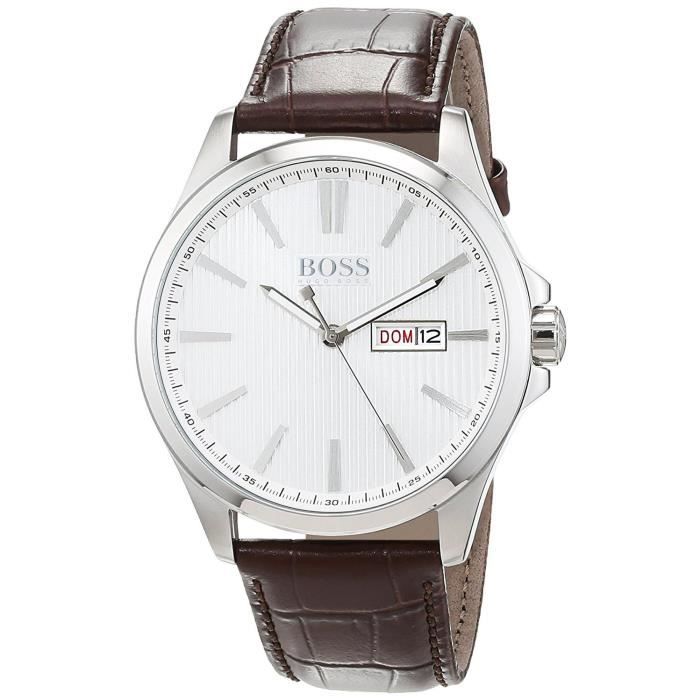 Hugo Boss Homme 42mm Bracelet Cuir Marron Quartz Cadran Argent Montre Achat Vente Montre Hugo Boss Homme 42mm Bracelet Cdiscount
