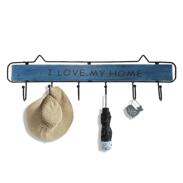 Tempsa 6 Crochets Porte Manteau Patere Mural Avec Support En Fer Et Bois Etageres De Rangement Pour Organisateur Bleu Achat Vente Patere Cdiscount