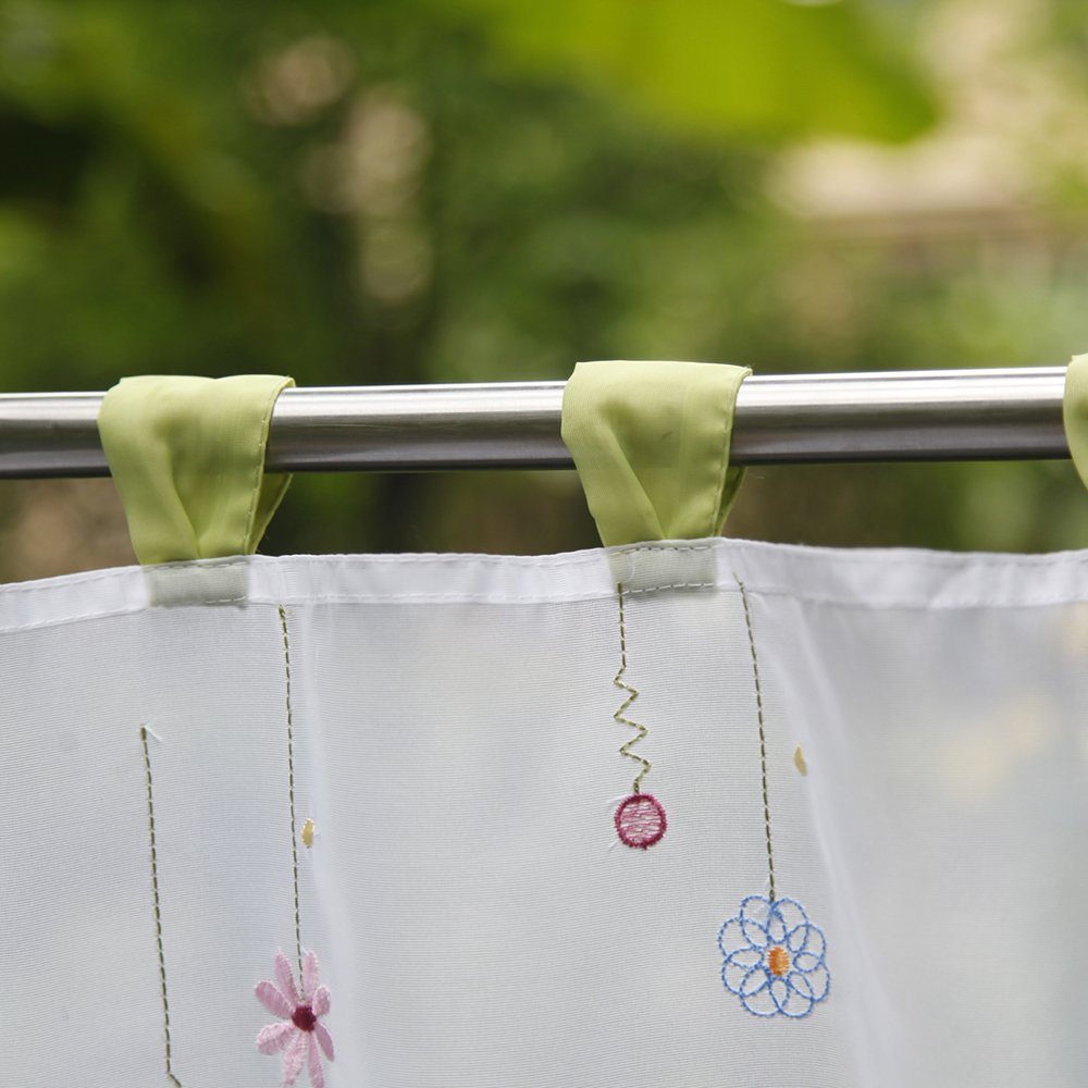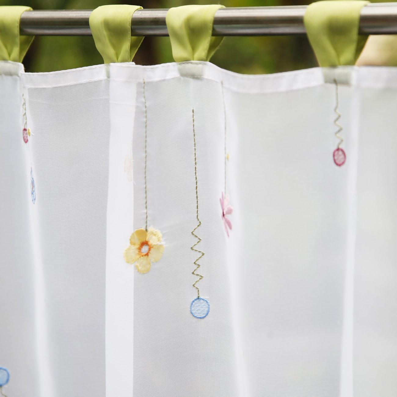 Motif successif de coeur;. Les brisebise, notre spécialité Ces petits rideaux fabriqués en voile de lin, de dimensions standard ou sur mesure sont la solution décorative idéale pour préserver votre intimité sans vous priver de la lumière du jour De style romantique, charme, ou intemporel il en existe pour toutes les pièces de la maison. 1Pc Rideau Voilage Brisebise en Polyester Broderie Fleurs avec Pompon Décoration de Fenêtre Chambre/ Café / Cuisine LxH 60x1CM 1Pc Rideau voilage brisebise en polyester broderie fleurs avec pompon Perméable à la lumière Largeur x Hauteur 60x1cm Suspension passe tringle Lavage à la main ou lavage en machine à 30°.