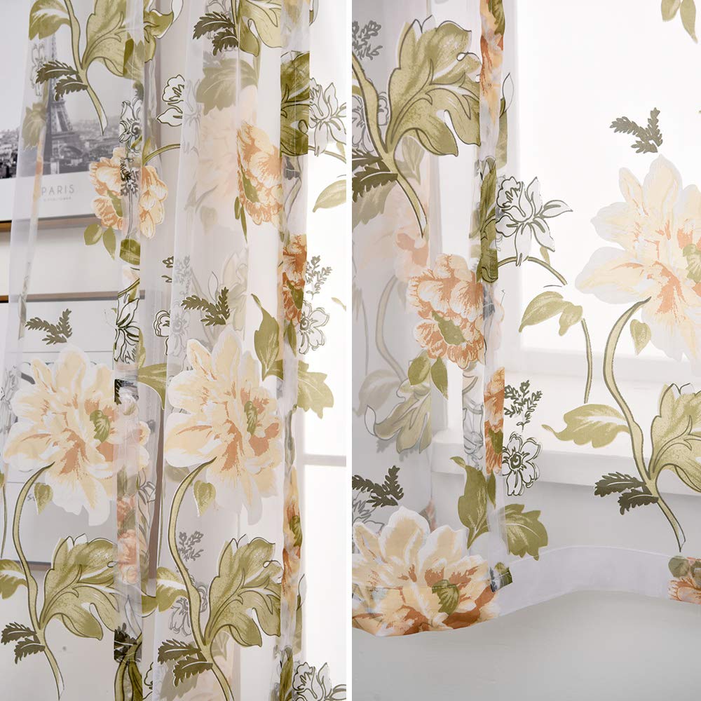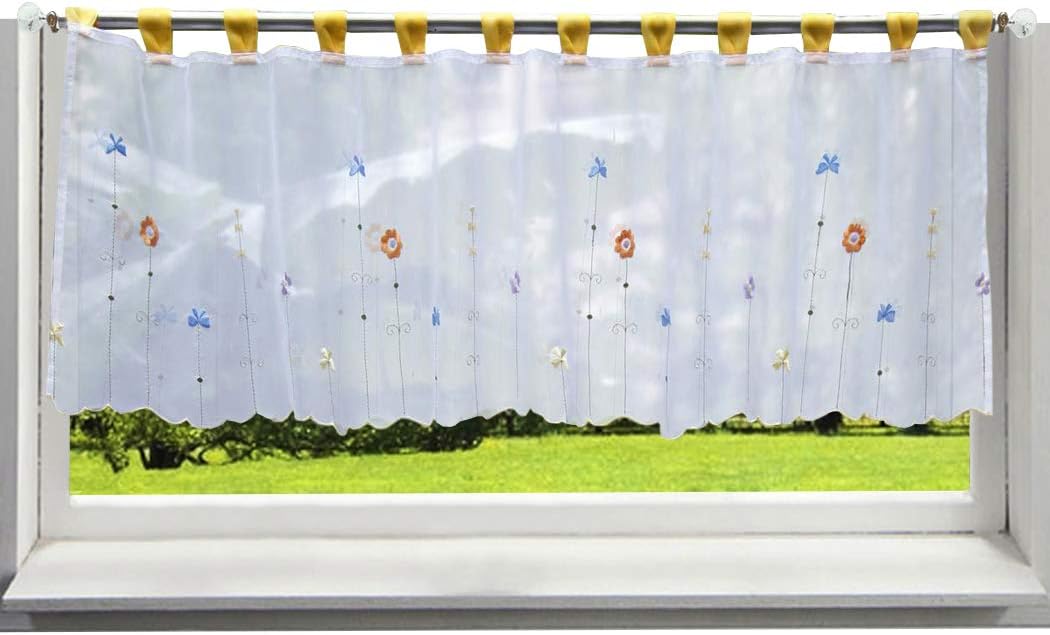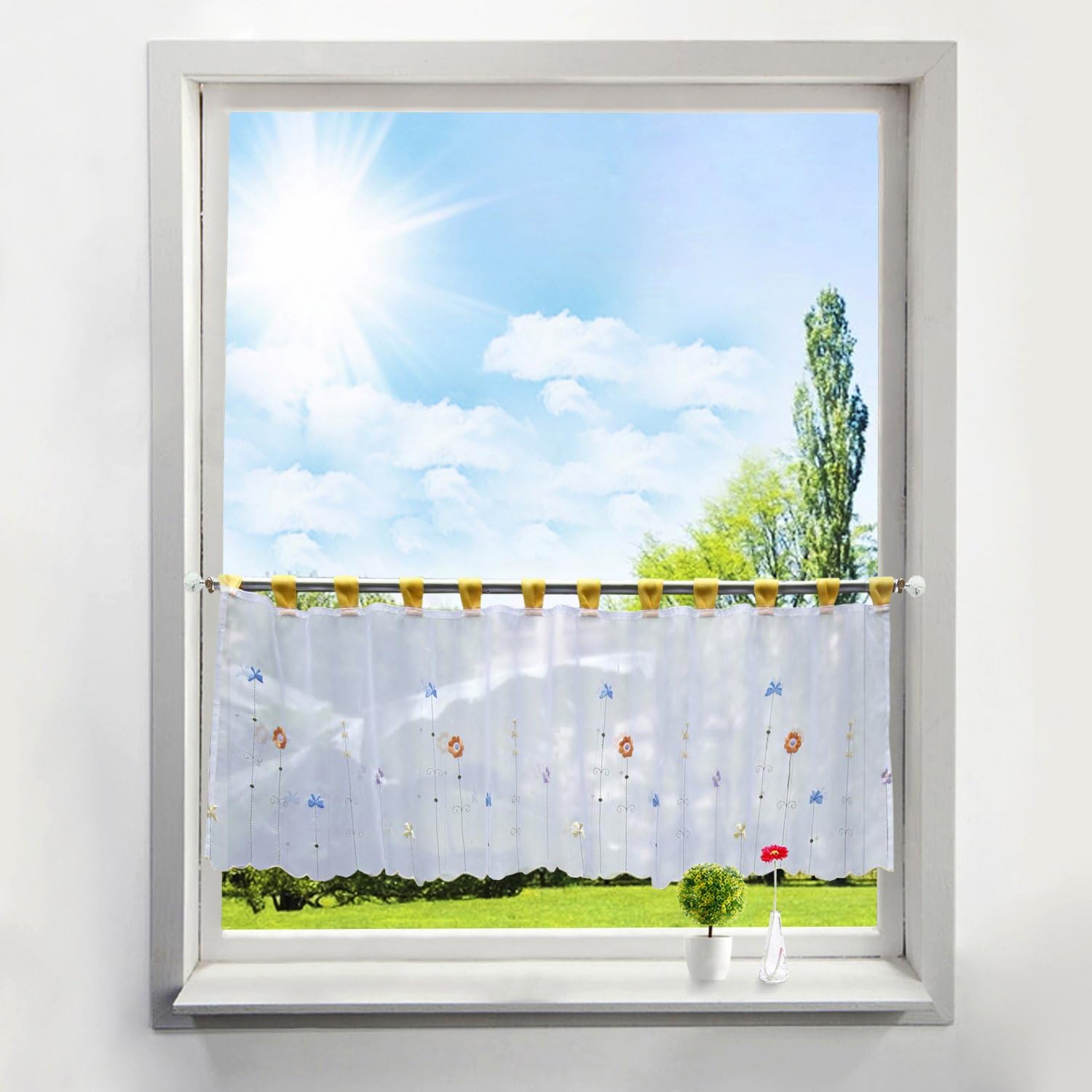 Cuisine 80 140cm Wankd 1piece Rideau Voilage Brise Bise En Polyester Broderie Jaune Fleur De Pivoine Rideaux Courts Decoration De Fenetre Chambre Salle De Bain Cafe Bebe Puericulture Rideaux
