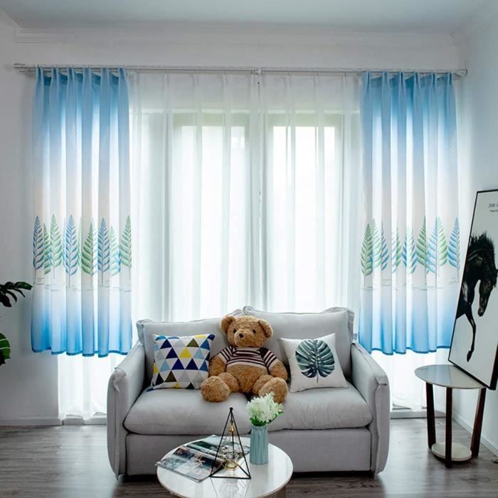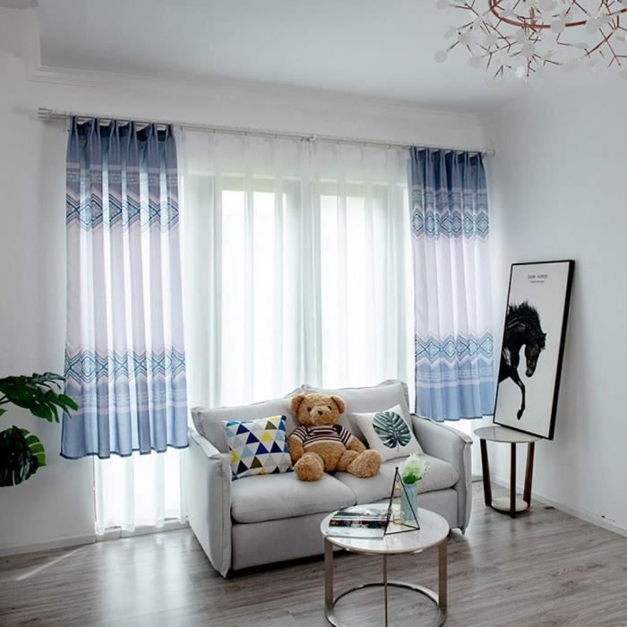 Style 3 Bleu Rideau Voilage Occultants Brise Bise Salon Et Draperies A Oeillets Isolant Cuisine Decoratif Anti Mouche Achat Vente Voilage Cdiscount