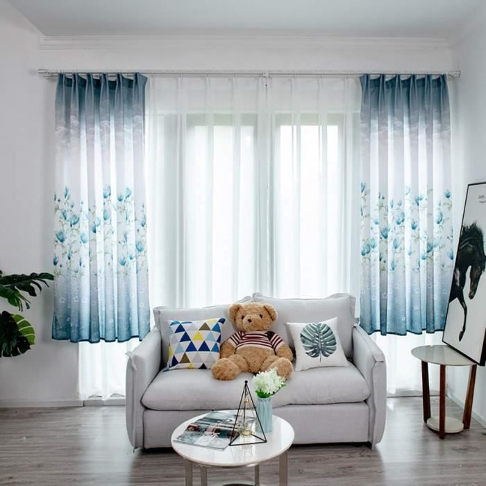 Style 4 Bleu Rideau Voilage Occultants Brise Bise Salon Et Draperies A Oeillets Isolant Cuisine Decoratif Anti Mouche Achat Vente Voilage Cdiscount