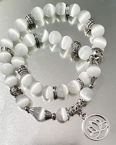 Bracelet Femme Fleur De Lotus Quartz Rose Et Rhodonite Perles De 8mm Yoga Zen Boutique