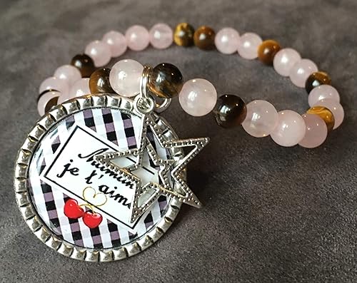 Bracelet Pierre Naturelle Semi Precieuse Quartz Rose Et Oeil De Tigre Amour Et Protection Maman Je T Aime Amazon Fr Handmade