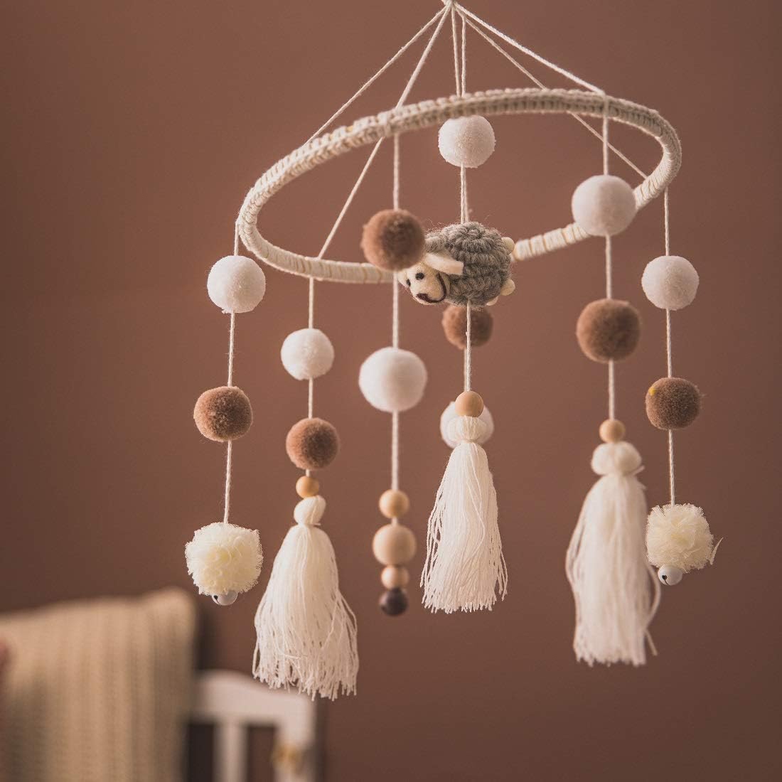 Cadeaux De Naissance Et Souvenirs Promise Babe Bebe Carillons Eoliens Cloche De Lit En Bois Balle Mobile En Feutre Jouets Suspendus Mobiles Pour Bebe Mobile Musical Pour Garcon Fille Arc En Ciel