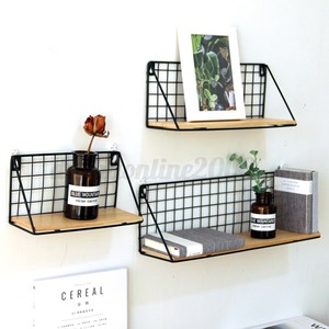 Etagere Murale En Fer En Bois Support Rangement Organisateur Stockage Decoration Ebay