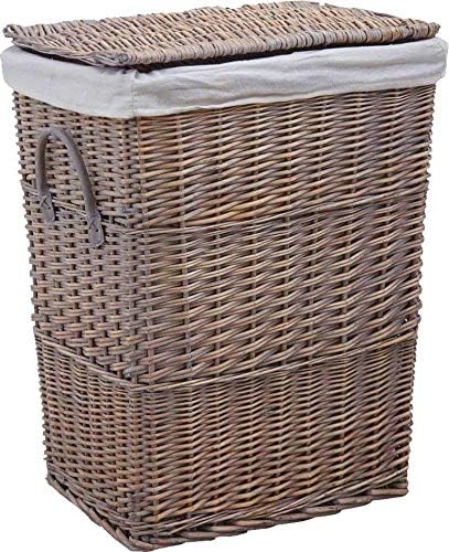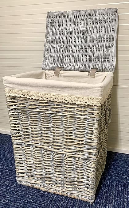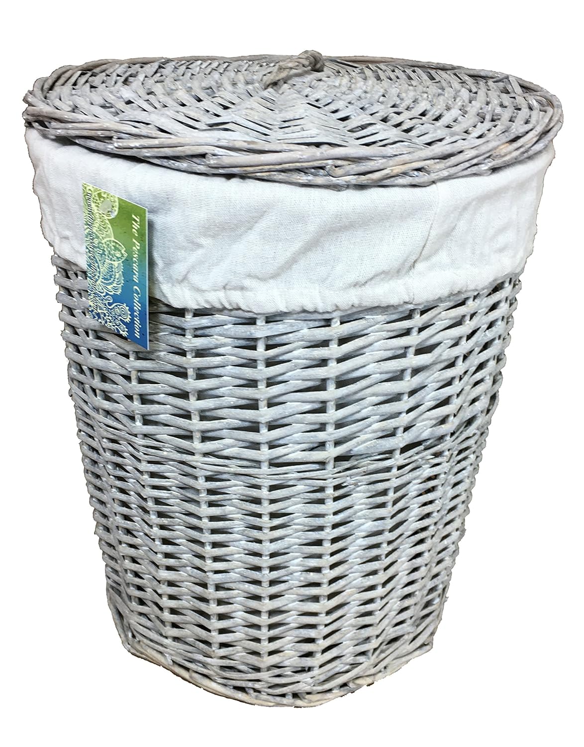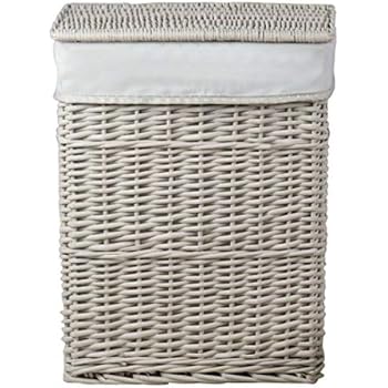 Panier A Linge Osier Ceruse Gris Avec Housse Amovible Coordonnee 43x57cm Vintage Rangement Cie Laundry Basket Wicker Wicker Laundry Basket