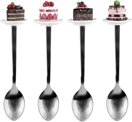 Amatable 37 2k 010 Cuilleres A Dessert Gateaux Coffret De 4 Assorties Gris Et Multicolore Acier Inoxydable Et Resine D3 5 X 14 5 Cm Amazon Fr Cuisine Maison