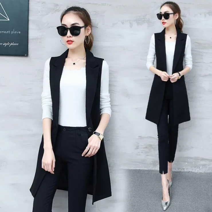 Acheter Olivarf Classique Style Costume Long Gilet Femmes 17 Printemps Automne Nouveau Casual Gilet Noir Lady Sans Manches Veste Cardigan De 14 58 Du Prime10 Dhgate Com