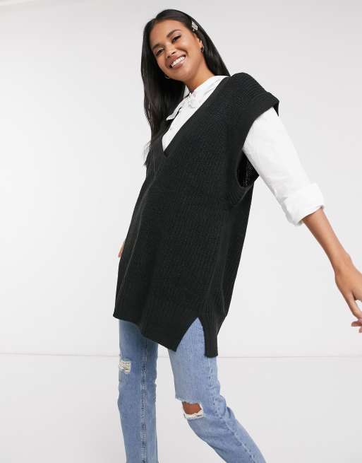 Monki Elise Pull Sans Manches En Maille A Col V Noir Asos