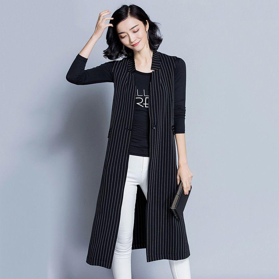 Acheter Gilet Sans Manches Blazer Femmes Casual Manteaux 17 Printemps Automne Noir Raye Long Gilet Gilet Femme Veste Outwear De 29 73 Du Prime10 Dhgate Com