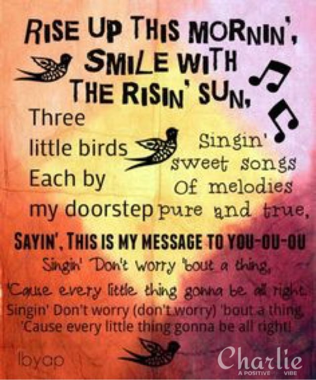 Chorus NC F But don't you worry about a thing, F7 Am Fmaj7/A maj7 Don't you worry about a thing, mama, G7 /C Fmaj7 ug/Eb 'Cause I'll be standing on the side when you check it out!. You probably have heard the catchy hook in the lyrics to Bob Marley's hit song Three Little Birds "Don't Worry About A Thing 'Cause every little thing is gonna be alright Singin', don't worry about a thing 'Cause every little thing is gonna be alright (If reading the lines doesn't ring any bells click play below and. Don't worry about a thing Cause every little thing gonna be all right Singing don't worry about a thing Cause every little thing gonna be all right Rise up this morning Smiled with the rising sun Three little birds Pitch by my doorstep Singing sweet songs Of melodies pure and true Saying.