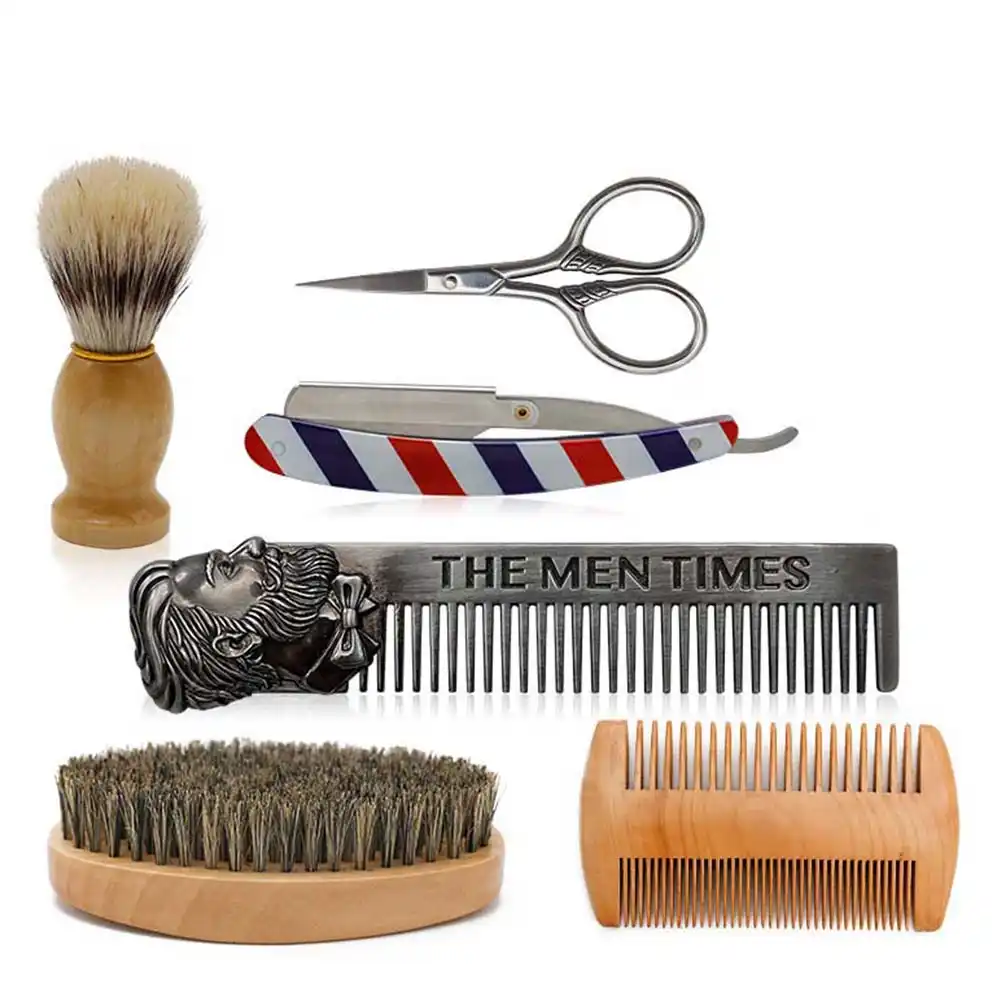 Avec Lames Kit De Rasage Pour Homme Toilettage De Barbe Modeles De Moulage Kit De Tondeuse 6 En 1 Pour La Barbe Peigne