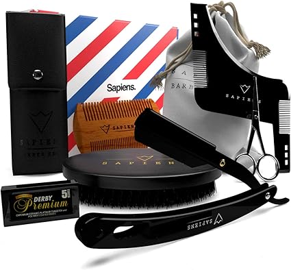 Kit Soin Barbe Et Rasage Sapiens Barbershop Coffret Barbe Homme Complet Coupe Choux Huile Barbe Et Baume Barbe Made In France Lames Derby Brosse Barbe Peigne Barbe Pochoir Ciseaux Pochette