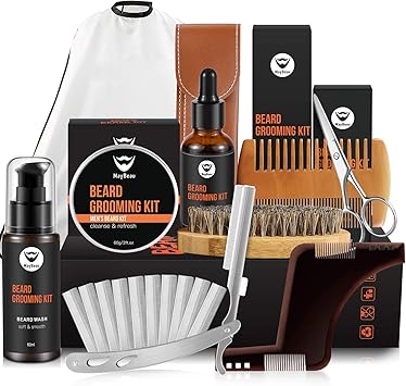 Maybeau Barbe Homme Kit 10 En 1 Complet Huile A Barbe 30ml Baume Barbe 60g Shampooing Barbe 60ml Rasoir Peigne Brosse Ciseaux Pochoir Etanche Yablier Narbe Ventouse 2pcs Amazon Fr Beaute Et Parfum