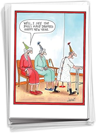 Amazon Com Nobleworks Balls Dropped 12 Funny Adult New Year S Greeting Cards With Envelopes Senior Citizen Comic Elderly Nye Card B1564 Greeting Cards Office Products