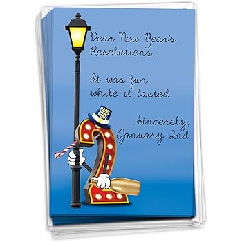 Amazon Com Dear Resolutions 12 Funny Happy New Year Greeting Cards With Envelopes 4 63 X 6 75 Inch Funny Nye Resolution New Year S Note Card Set Boxed Stationery Celebration Notecards C42nyg B12 Office Products