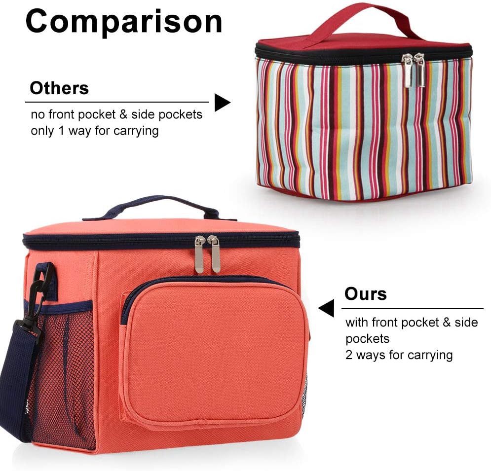 Ce sac à lunch semble petit, mais avec une grande capacité, il pourrait adapter parfaitement à la boîte à lunch, des collations, des fruits;. Ce fourretout déjeuner est léger et pliable, facile à transporter. Convient pour ce sac à déjeuner pour femme, boîte à déjeuner pour adultes, sac à déjeuner pour homme, boîte à lunch isotherme, bouteilles d'eau, boîte bento, canettes, fruits, collations, déjeuner, dîner ou petit déjeuner Matériau extérieur nylon et fibre de polyester Intérieur feuille d'aluminium de qualité alimentaire.