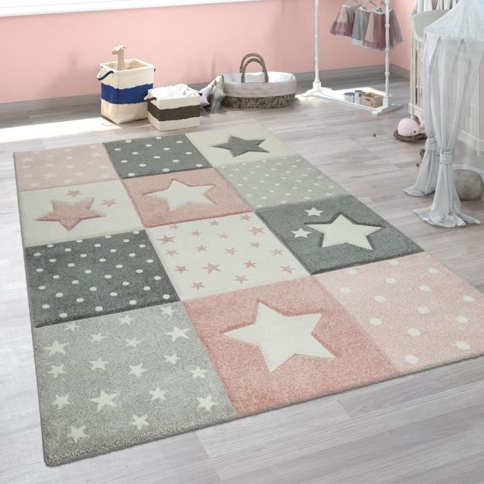 Paco Home Tapis Chambre Enfant Tapis Enfant Grands Et Petits Etoiles Rose Gris Tapis Rue Du Commerce